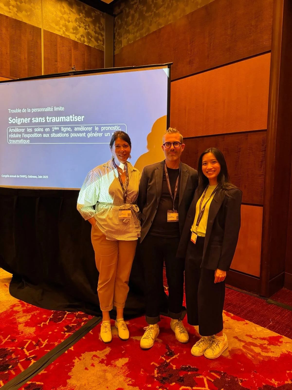 Du 4 au 7 juin 2025 a eu lieu le congrès de l’Association des Médecins Psychiatres du Québec (AMPQ). Dre Katerina Sanchez-Schicharew, Dr Maxime Bérubé et Dre Mélanie Truong ont passé un beau moment ensemble : C’était une belle occasion de rencontre, de ressourcement et de partage de connaissances.